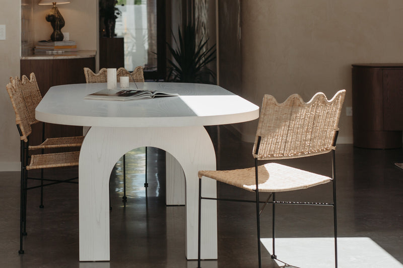 The Bernadette Dining Chair by McMullin & Co brings natural texture and thoughtful design to the dining room. Its elegantly curved silhouette offers lasting comfort, making it as inviting for evening-long gatherings as it is visually striking. Expertly woven, Bernadette blends refined craftsmanship with effortless style, creating a dining experience that feels both warm and elevated.